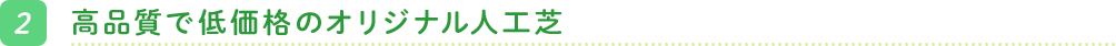 「人好芝 石坂」の人工芝は、素材にもこだわっているオリジナルのものです。海外生産と大量仕入れをすることで、多くのお客様に高品質な人工芝をお届けすることが可能になりました。